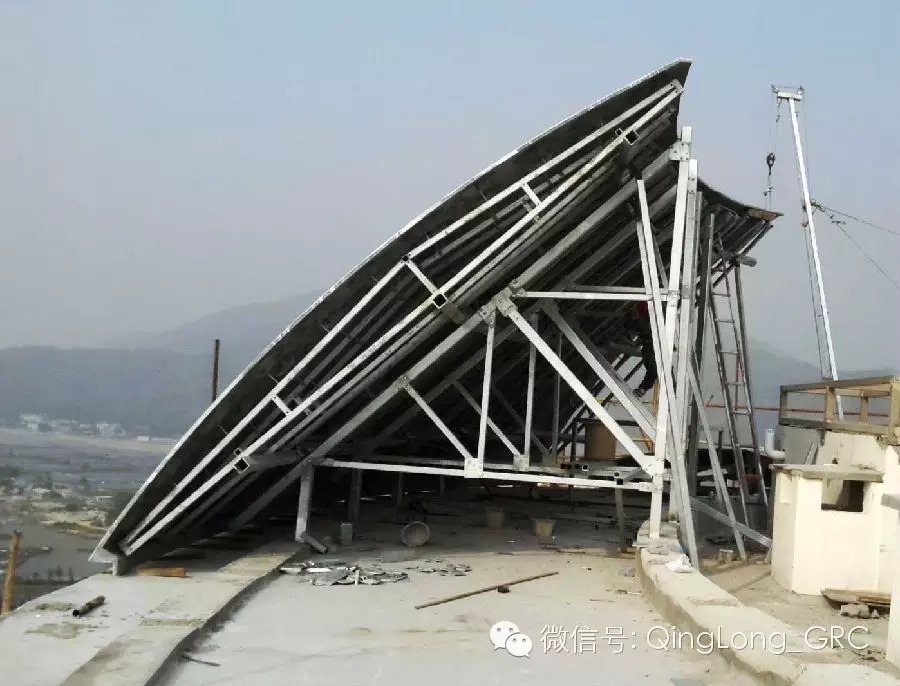 千億房企保利地產開發的海南保利半島1號項目,占地面積余畝,位于全球旅游熱點坐標--中國·海南。青龍公司獨立承接了半島1號的GRC異型雙曲面板的制作和安裝分項工程。使用了25mm厚度灰水泥基質幕墻造型板,邊上厚度達30mm。采用面積12000m²,內置結構鋼架和背負鋼架,最大規格L6000mm X W3000mm,一般體育館和港口及造型屋面使用較多,其紐帶型GRC屋面,可以實現設計師的設計靈感。