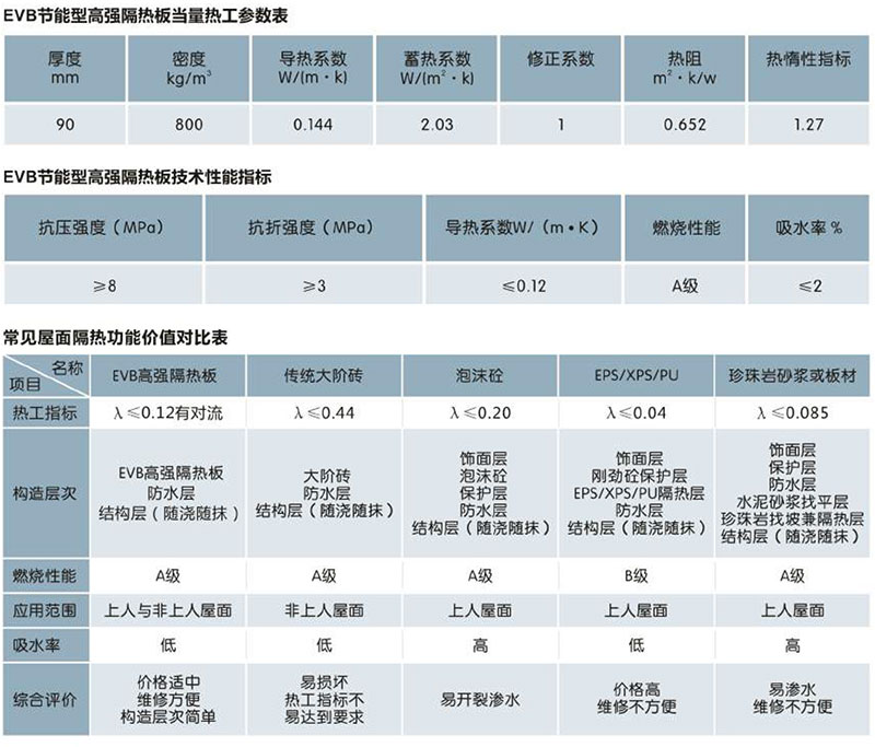 EVB節能型高強隔熱板是由青龍公司為響應國家節能減排政策用于解決屋面隔熱問題而專門研發的產品,其專利號為(Z200920052358.3)。它是由飾面層、隔熱層、承重層構成。